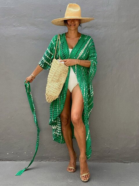 Cover-up in style with this Sexy Bikini Cover-ups Beach Pareo from our collection! Whether you're by the pool taking a dip or sipping drinks on the beach, this tie dye kimono dress is perfect for you. Feel both comfortable and fashionable in this lightweight beachwear inspired by the boho look. It's designed to be versatile and used as a swimsuit cover up, giving you a carefree look with an extra hint of sexiness throughout your summer days. Transform your day at the beach into something special wearing this elegant summer women's beachwear. Get yours today and be prepared for all events!